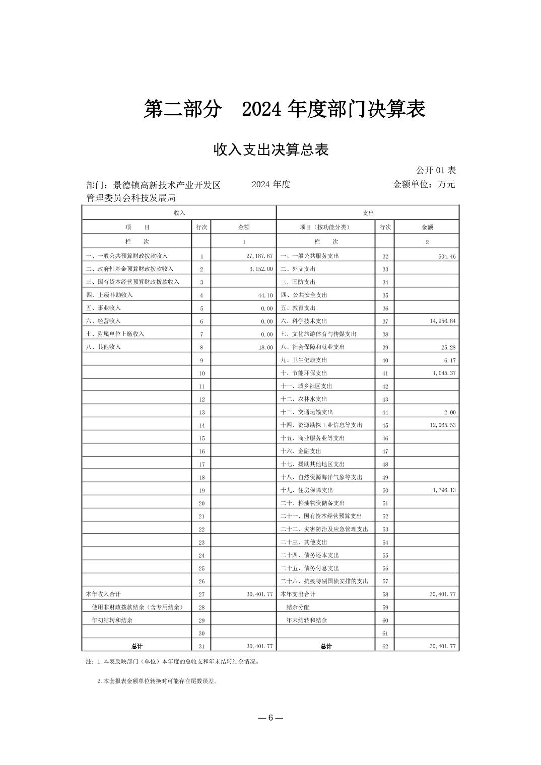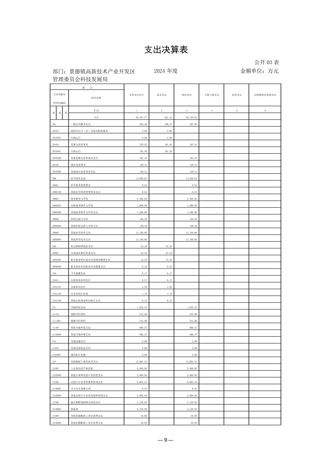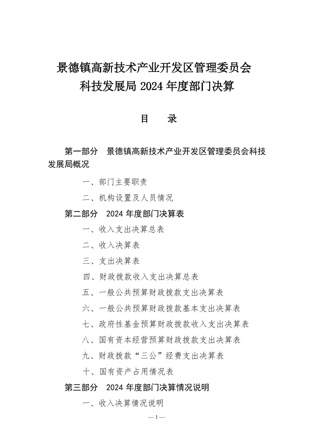 景德镇高新技术产业开发区管理委员会科技发展局2024年度部门决算