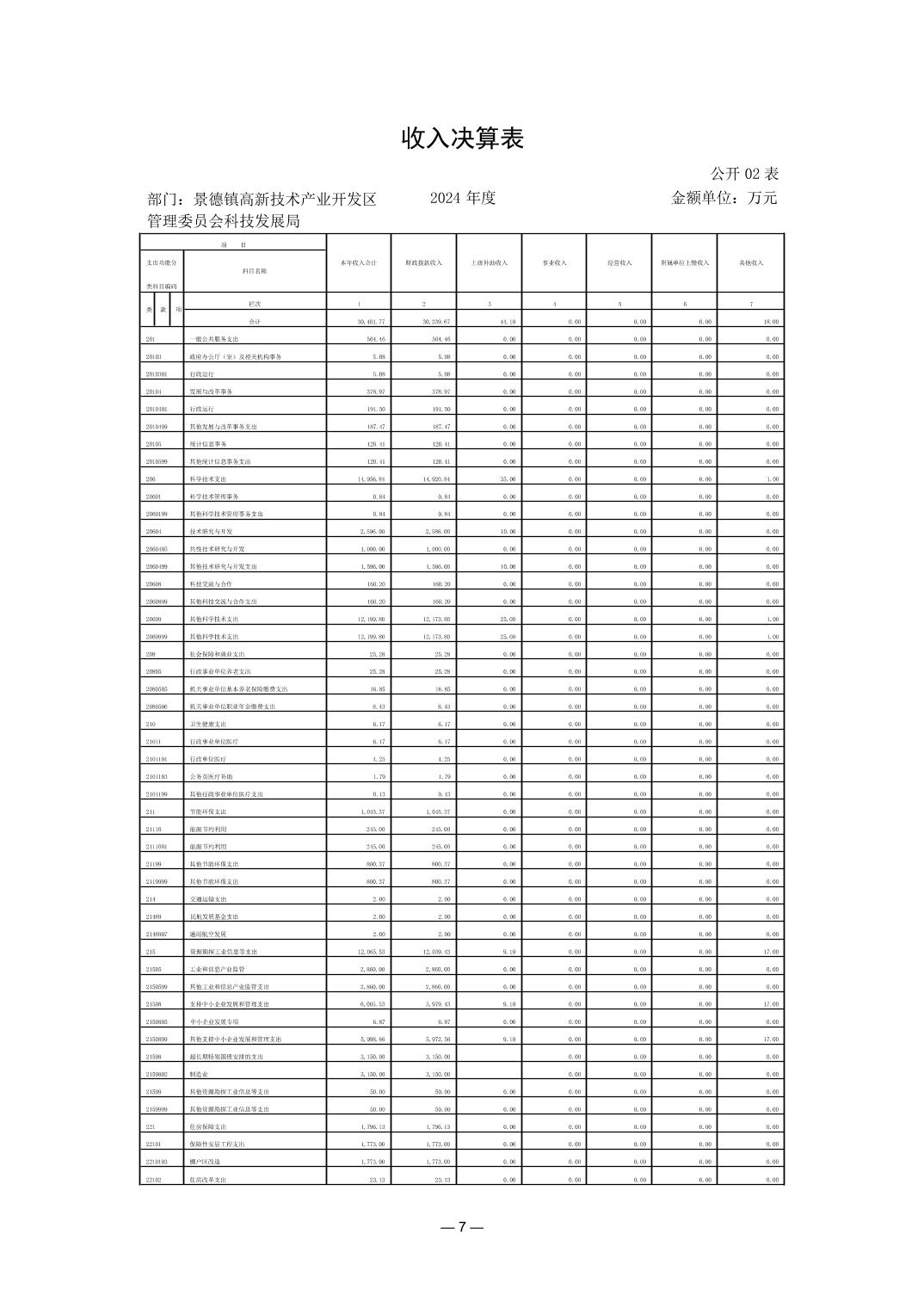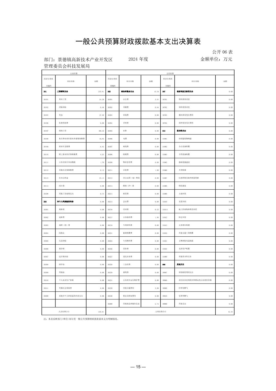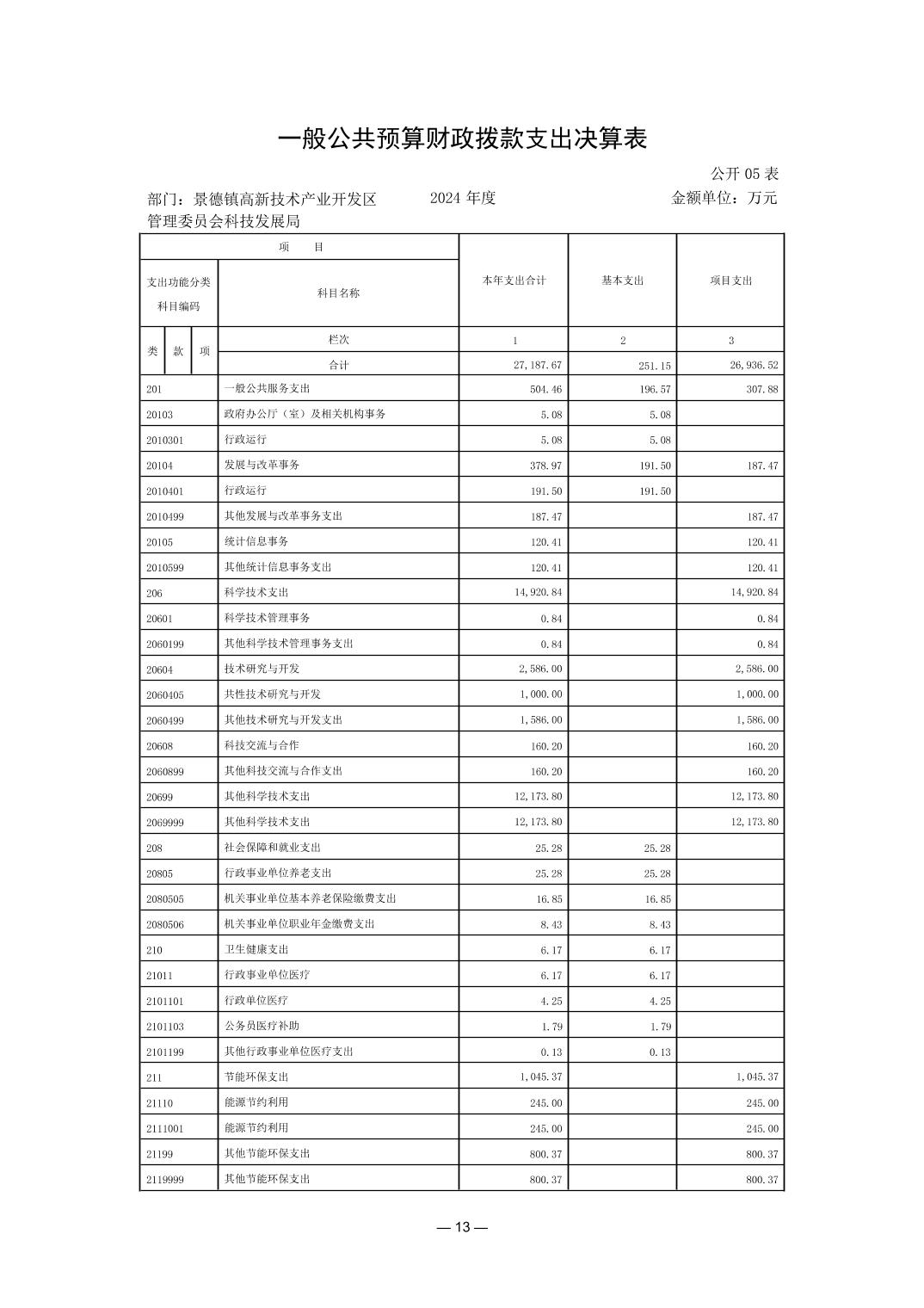 景德镇高新技术产业开发区管理委员会科技发展局2024年度部门决算