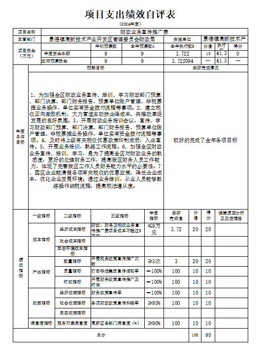 本单位“财政业务宣传推广费项目支出绩效自评表”如下: