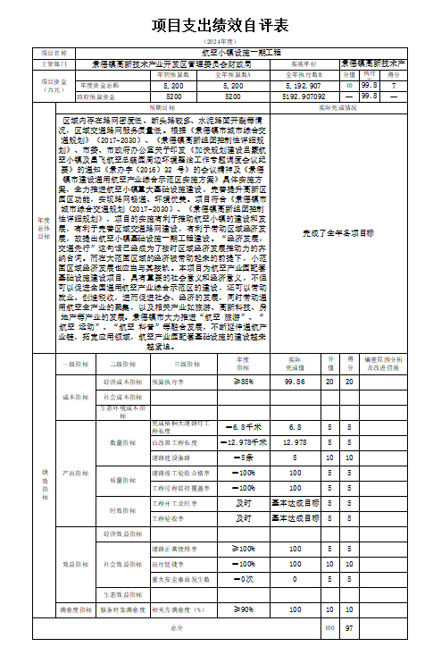 本单位“航空小镇设施一期工程项目支出绩效自评表”如下: