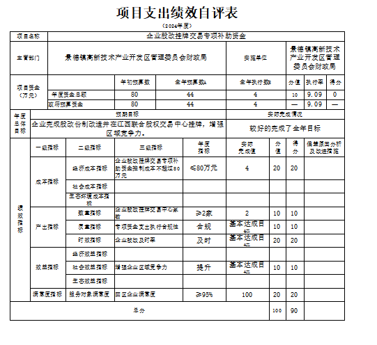本单位“企业股改挂牌交易专项补助资金项目支出绩效自评表”如下: