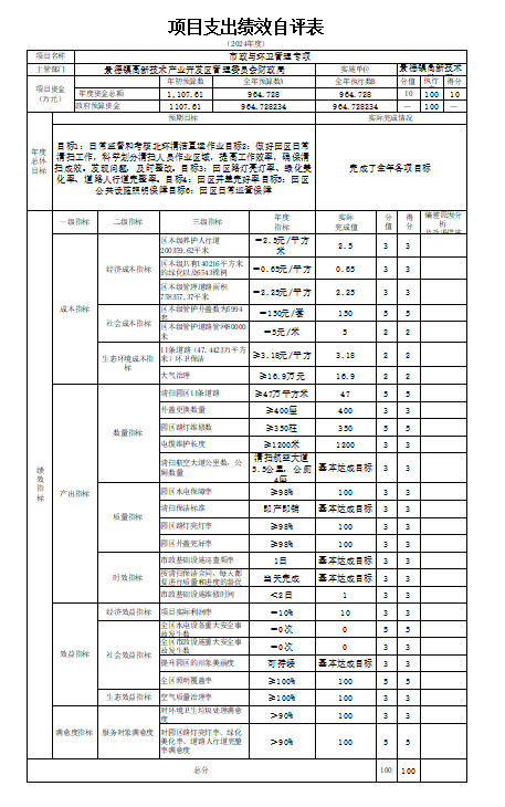 本单位“市政与环卫管理专项项目支出绩效自评表”如下: