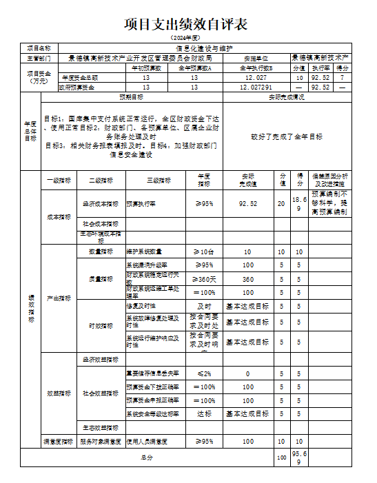 本单位“信息化建设与维护项目支出绩效自评表”如下: