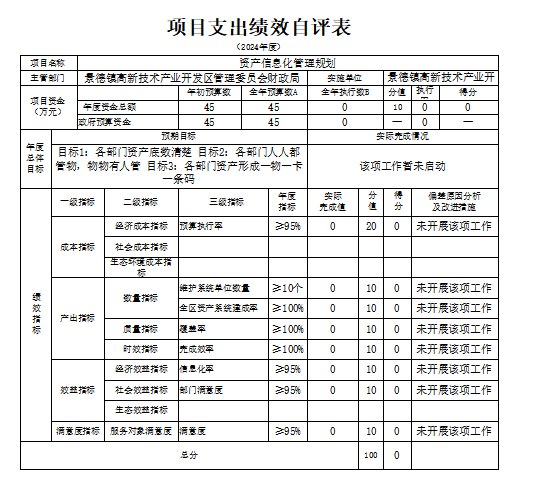 本单位“资产信息化管理规划项目支出绩效自评表”如下: