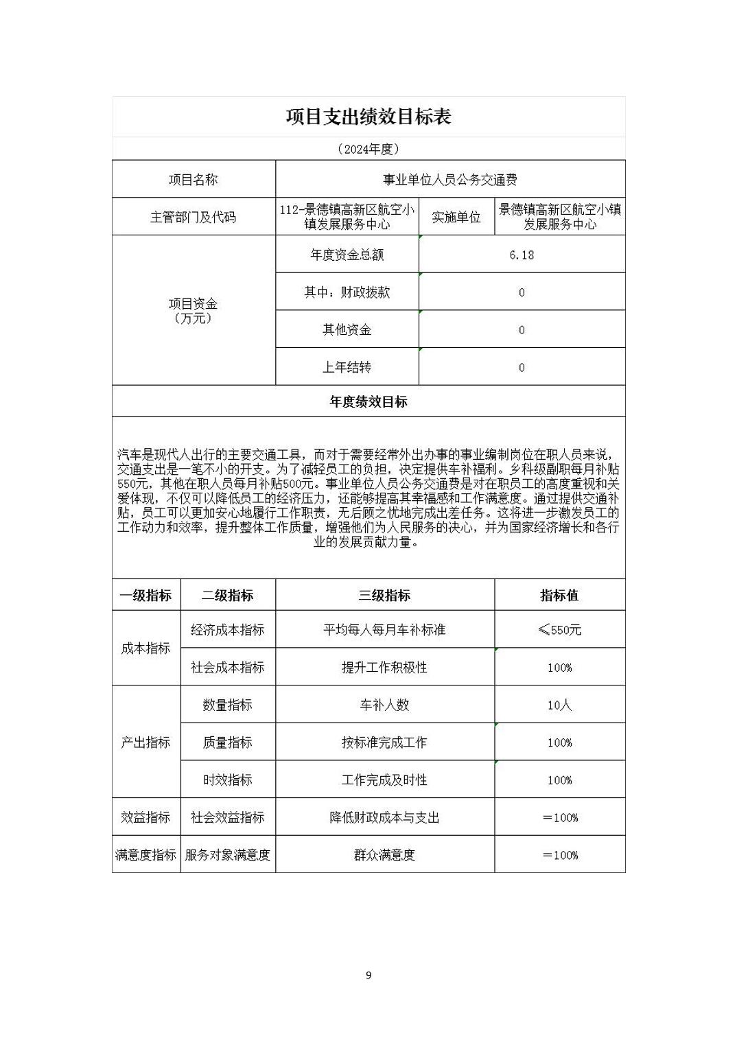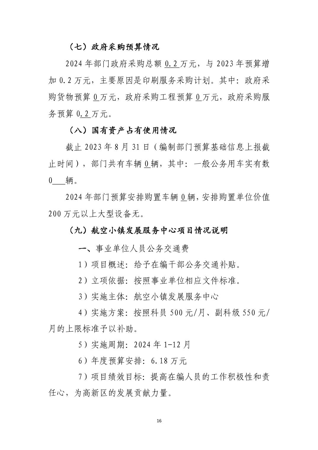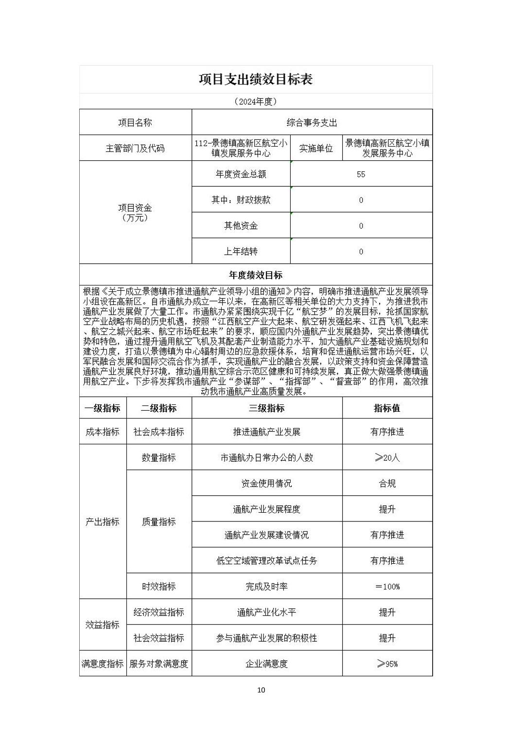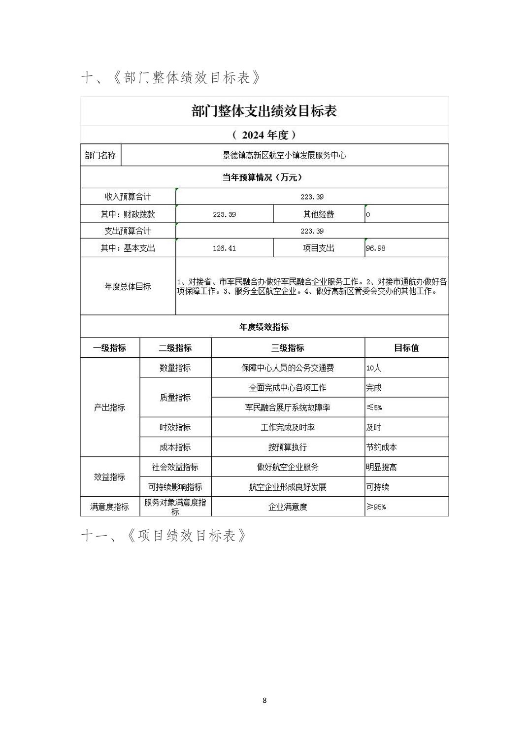 景德镇高新区航空小镇发展服务中心2024年部门预算公开