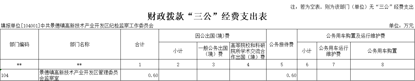 2025年区纪检监察工委“三公”经费财政拨款安排0.6 万元。其中:
