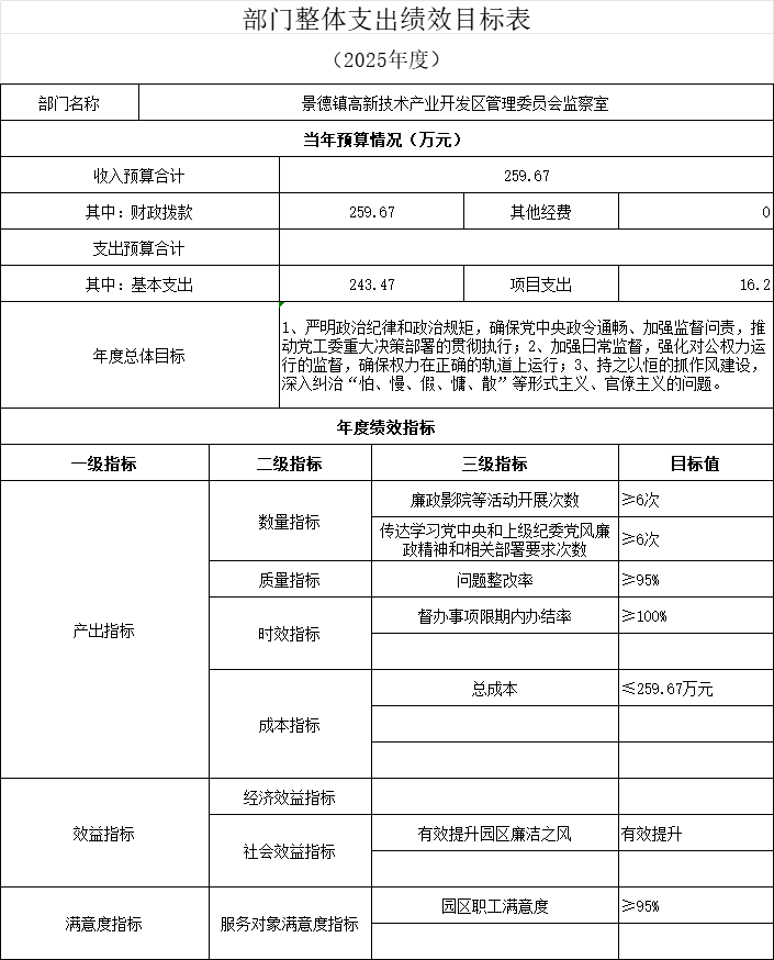 第三部分 高新区纪检监察工委2025年部门预算情况说明