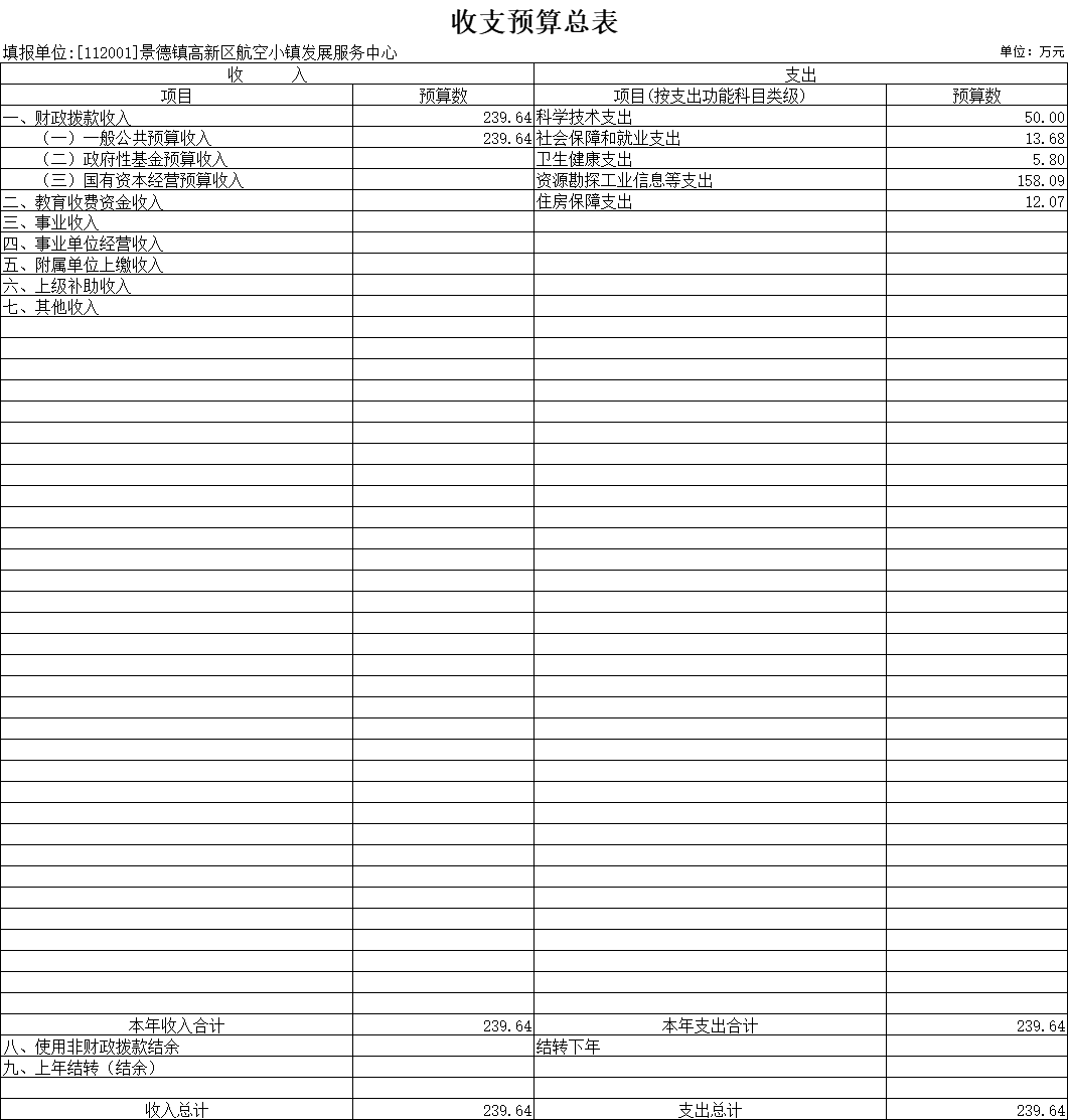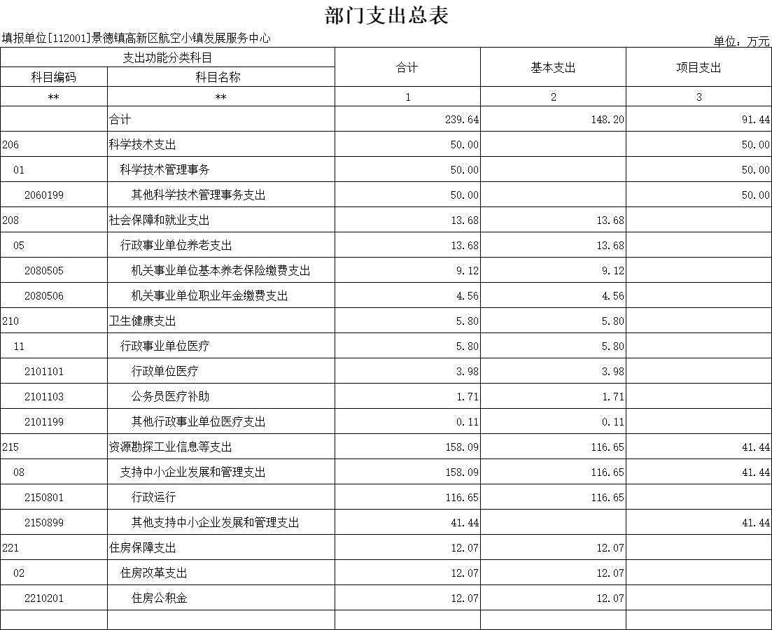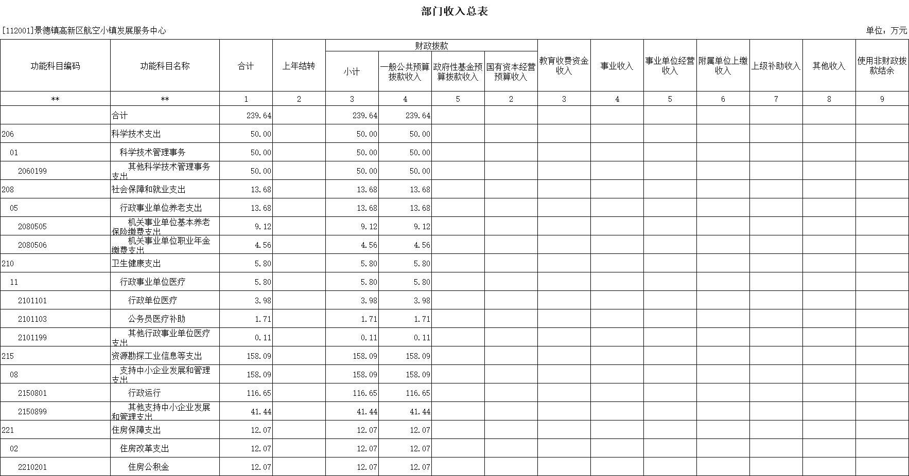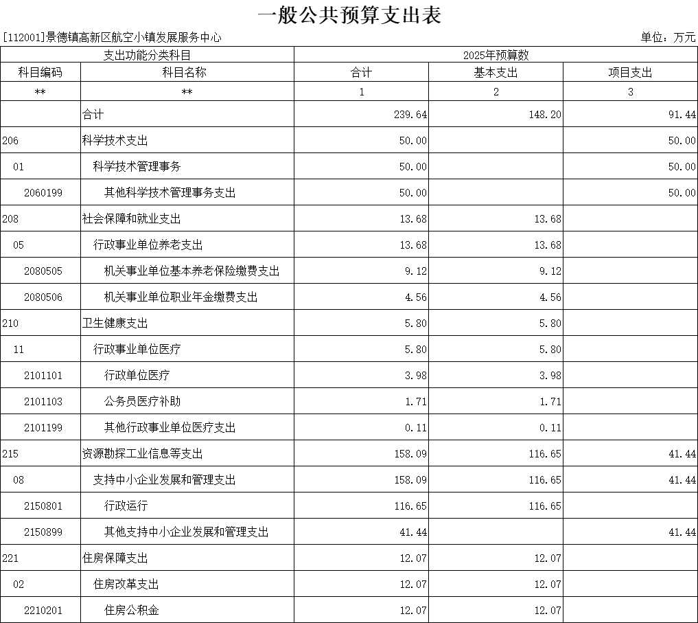 2025年航空小镇发展服务中心支出预算总额为239.64 万元,较上年预算安排增加16.25万元,主要原因是:整体对比增加的金额中包含部分科创孵化平台支持经费。其中: