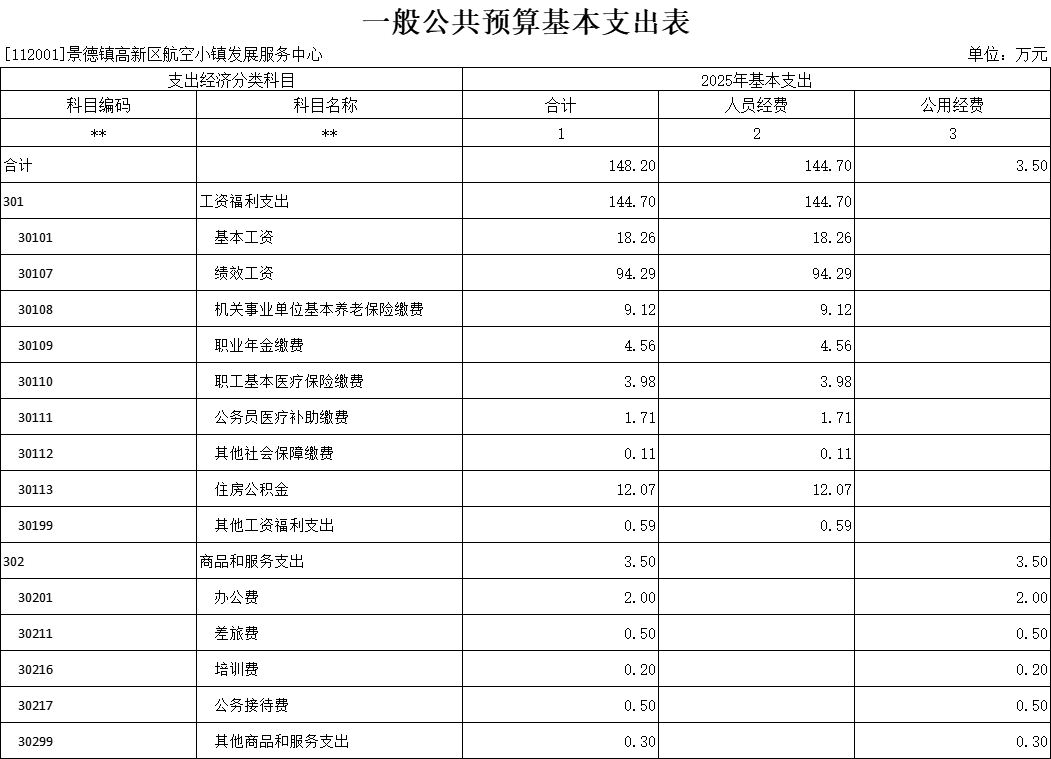 第二部分 高新区航空小镇发展服务中心2025年部门预算表
