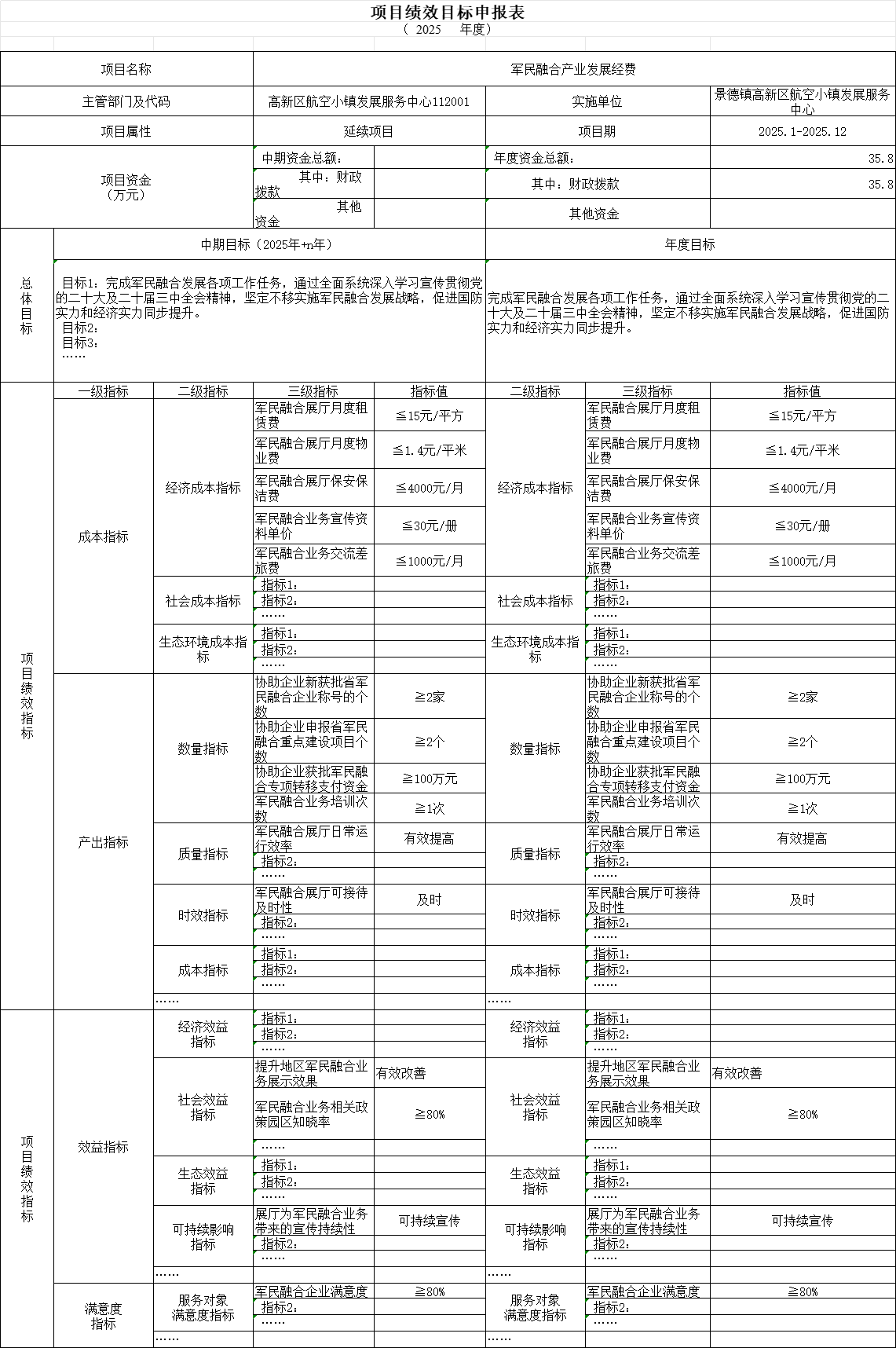 7)项目绩效目标:完成军民融合发展各项工作任务,通过全面系统深入学习宣传贯彻党的二十大及二十届三中全会精神,坚定不移实施军民融合发展战略,促进国防实力和经济实力同步提升。