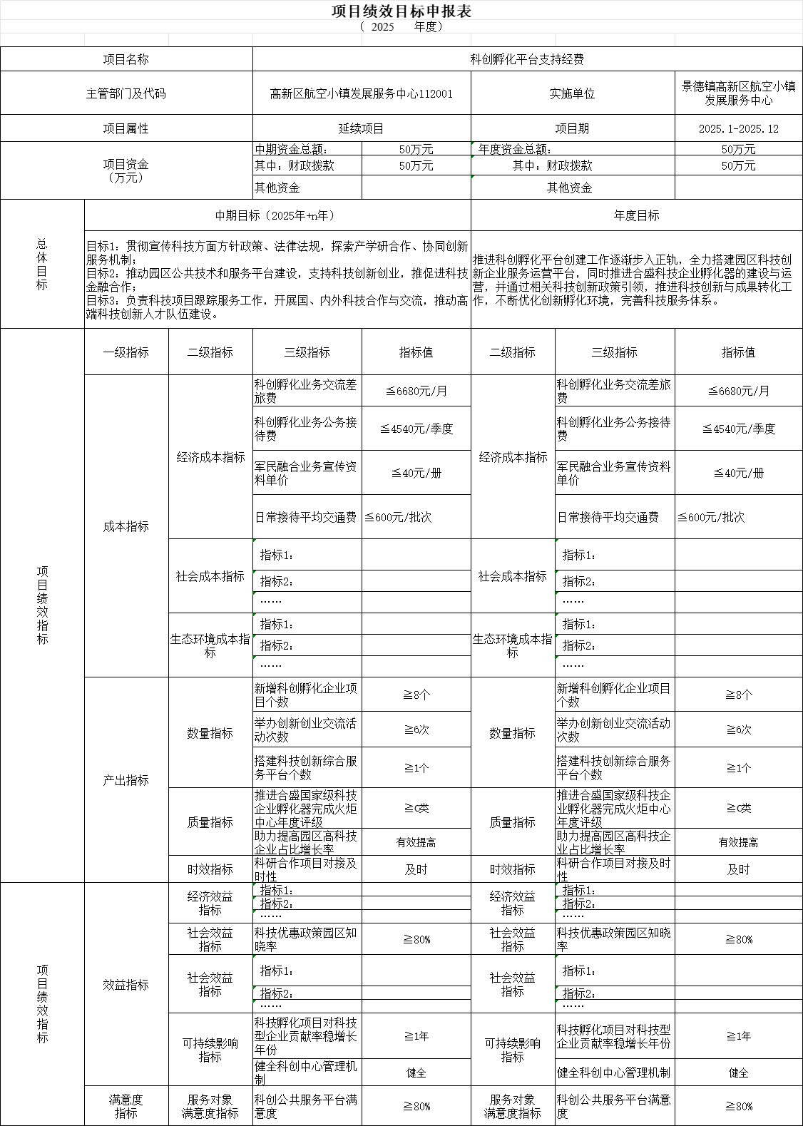 7)项目绩效目标:推进科创孵化平台创建,促进科技创新与成果转化,不断优化创新孵化环境,完善科技服务体系。