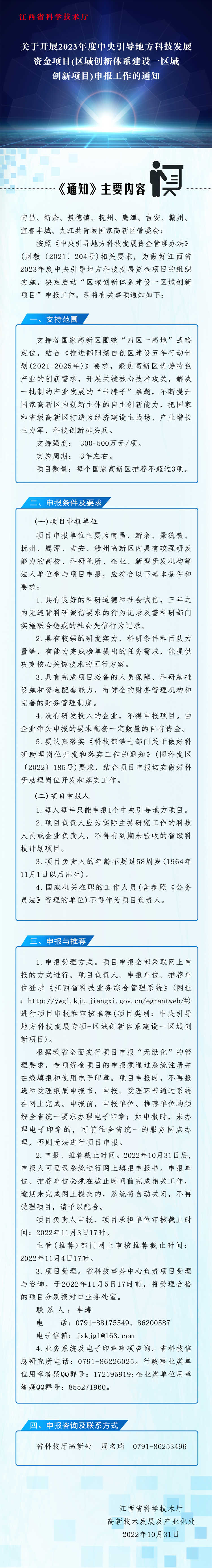 关于开展2023年度中央引导地方科技发展 资金项目(区域创新体系建设一区域 创新项目)申报工作的通知