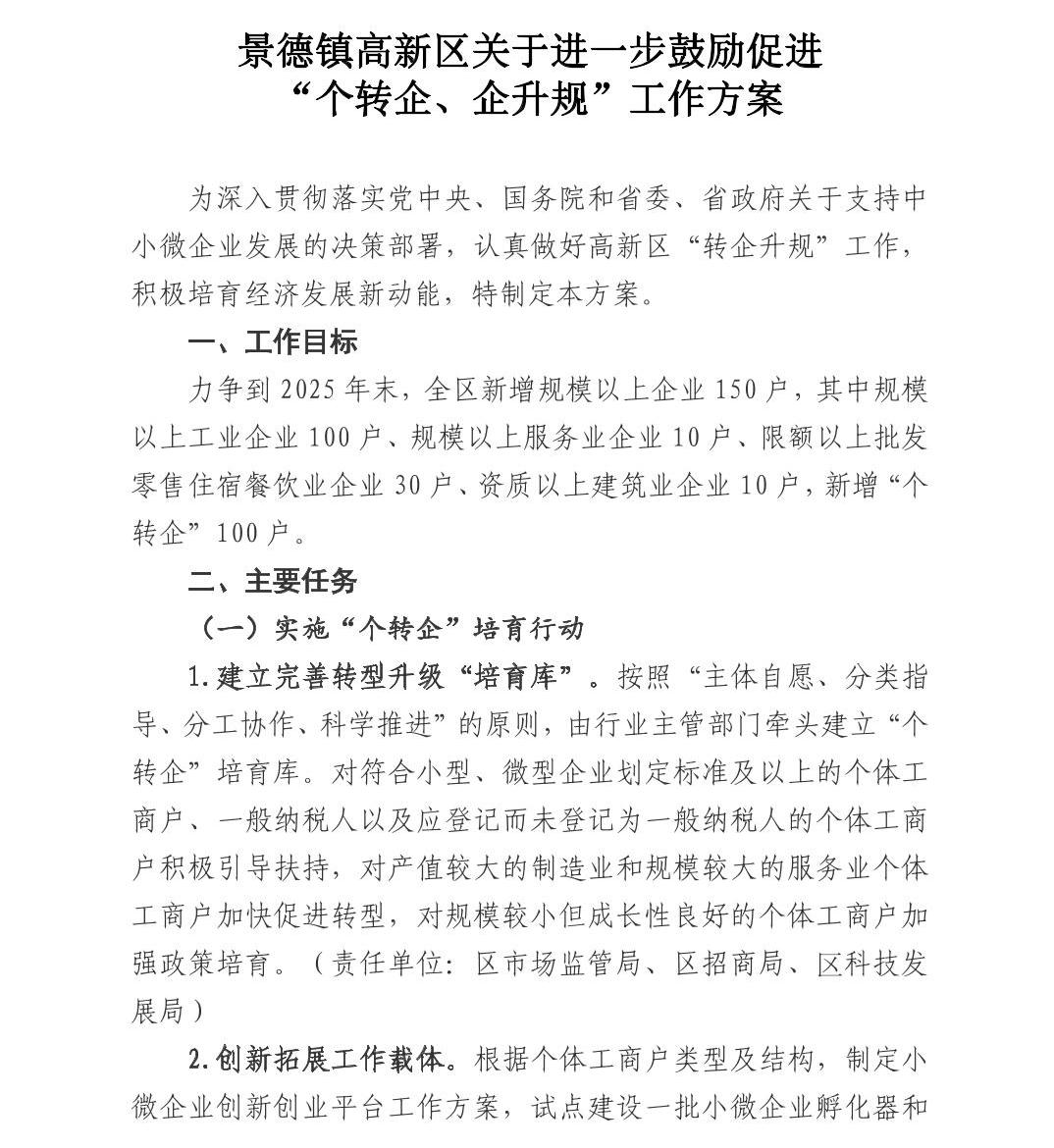 经研究同意,现将《景德镇高新区关于进一步鼓励促进“个转企、 企升规”工作方案》印发给你们,请按照文件要求,切实抓好贯彻落实。