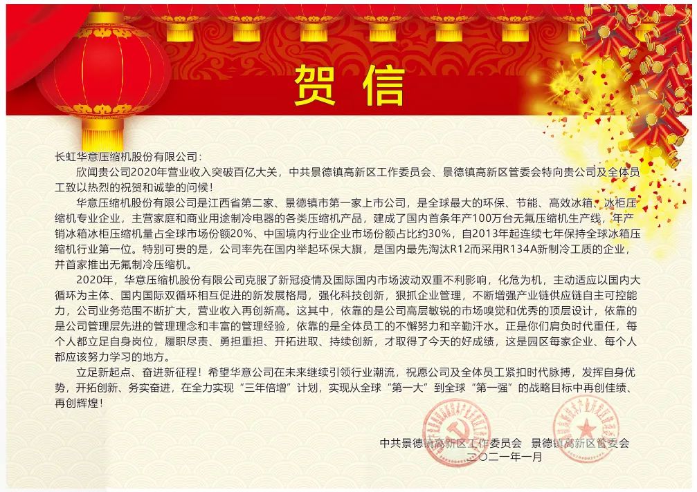 日前,从长虹华意公司传来喜讯,2020年该公司营业收入突破百亿大关,这标志着我区首家营收过百亿元企业诞生!